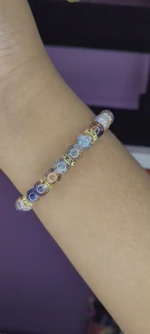 Elevate your style with this stunning black and brown crackle bracelet, accented by elegant gold spacers. Its unique crackle pattern creates a rich, textured look that complements any outfit. The gold spacers add a touch of sophistication, making this bracelet perfect for both casual and formal occasions. A versatile accessory designed to enhance your everyday elegance.