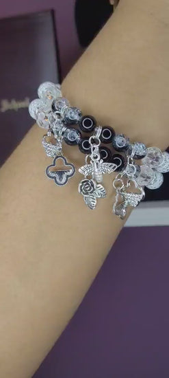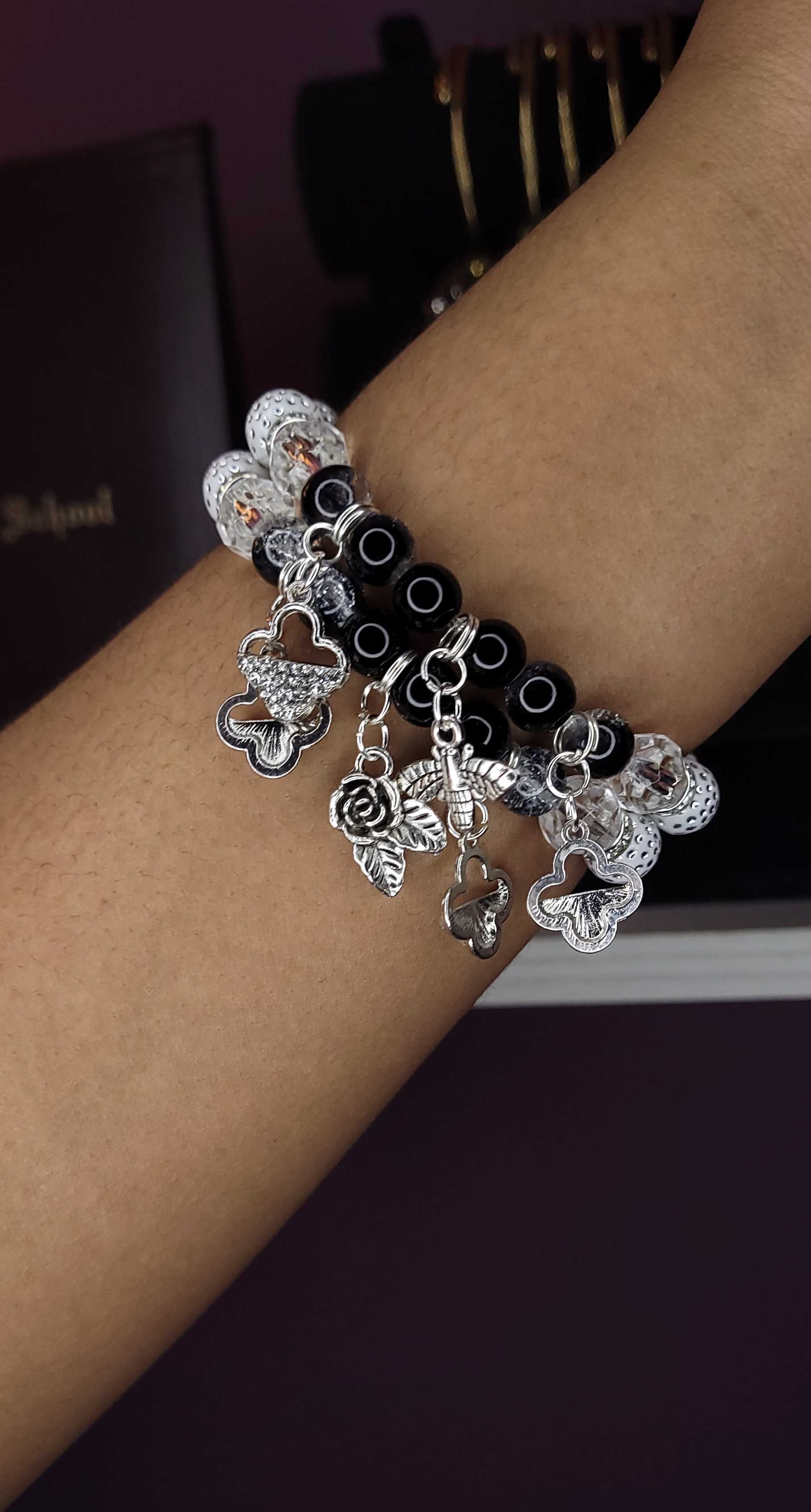 Elevate your style with the Black Clover bracelet, featuring a sleek black and white design perfectly accented by silver spacers. This striking combination adds a touch of elegance to any outfit, making it a versatile accessory that enhances both casual and formal looks. Crafted for those who appreciate subtle sophistication, the Black Clover bracelet offers a timeless appeal you'll reach for again and again.