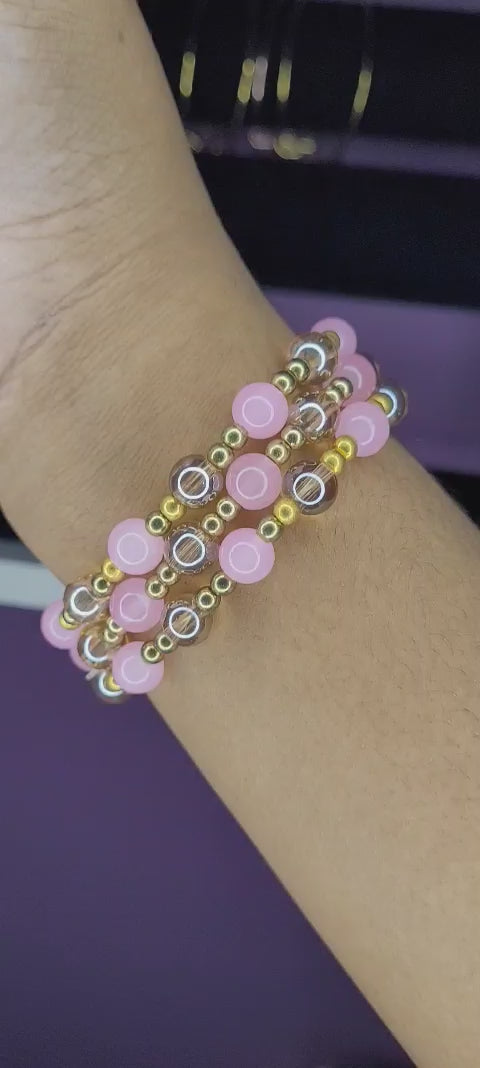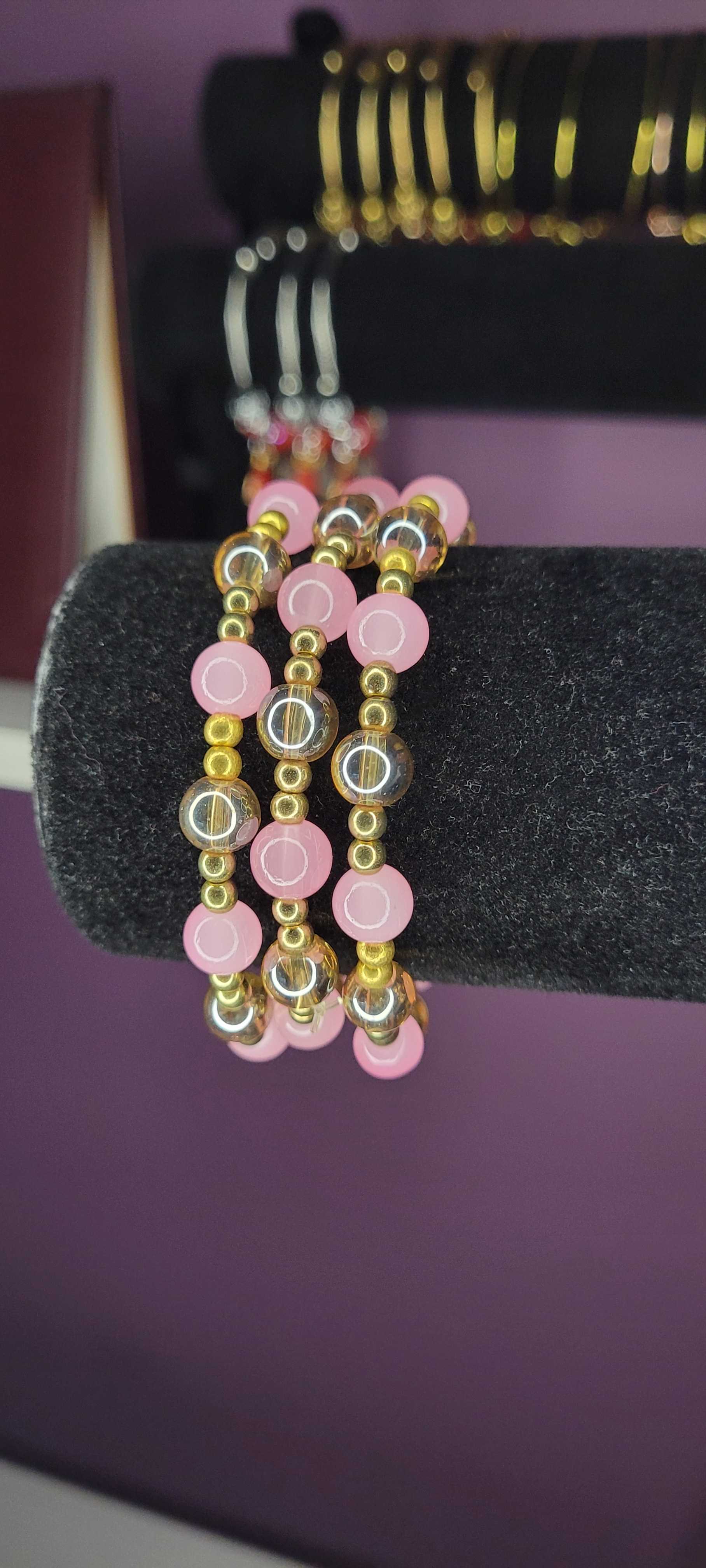 This stylish COMPASSION bracelet is made with pink and teak beads, accented with luxurious gold details. Handcrafted with care, it adds a touch of elegance to any outfit. Show your support for a good cause with this feminine and fashionable accessory.