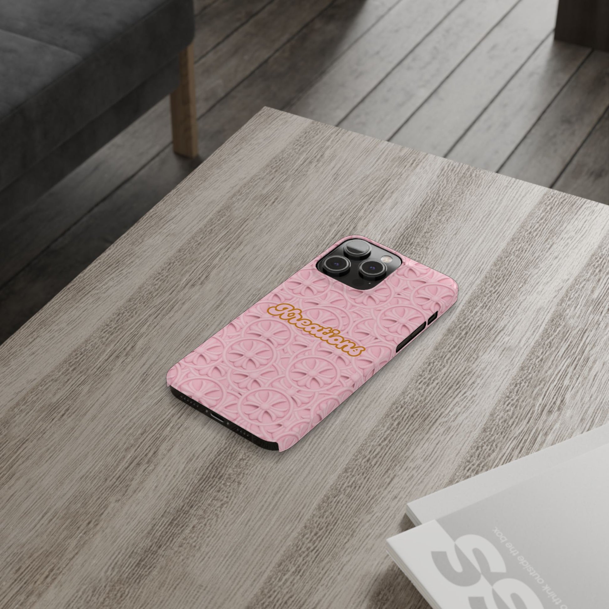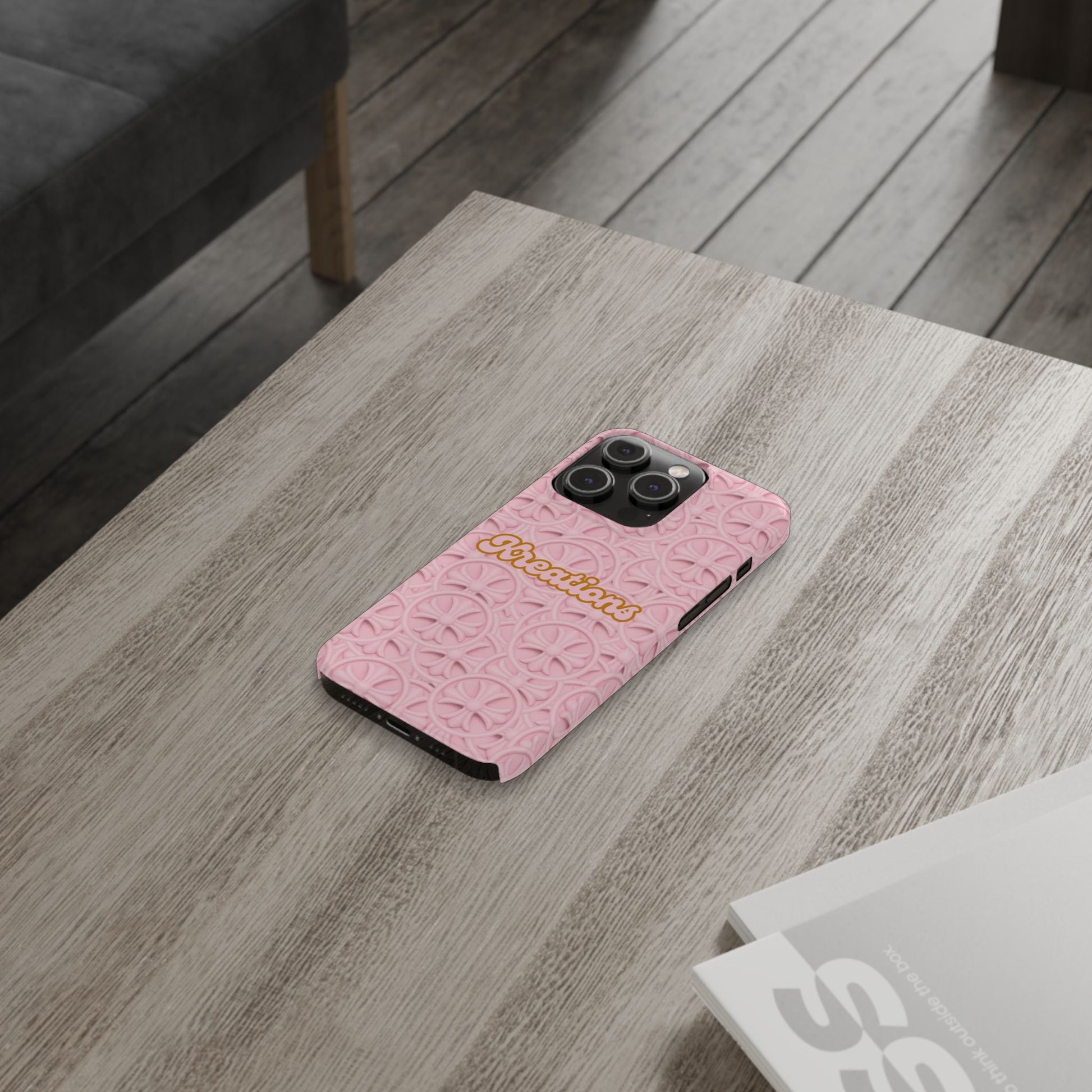 A slim, glossy phone case that blends delicate style with everyday protection. The pink, embossed-pattern design brings a soft, tactile touch to your phone while the Lexan polycarbonate shell shields against bumps and scratches.