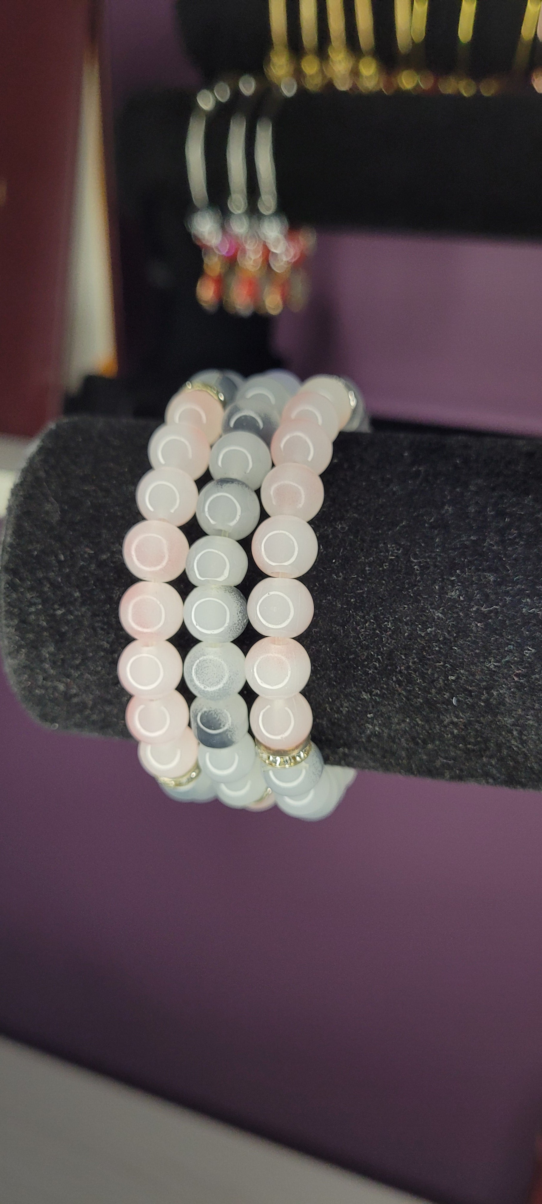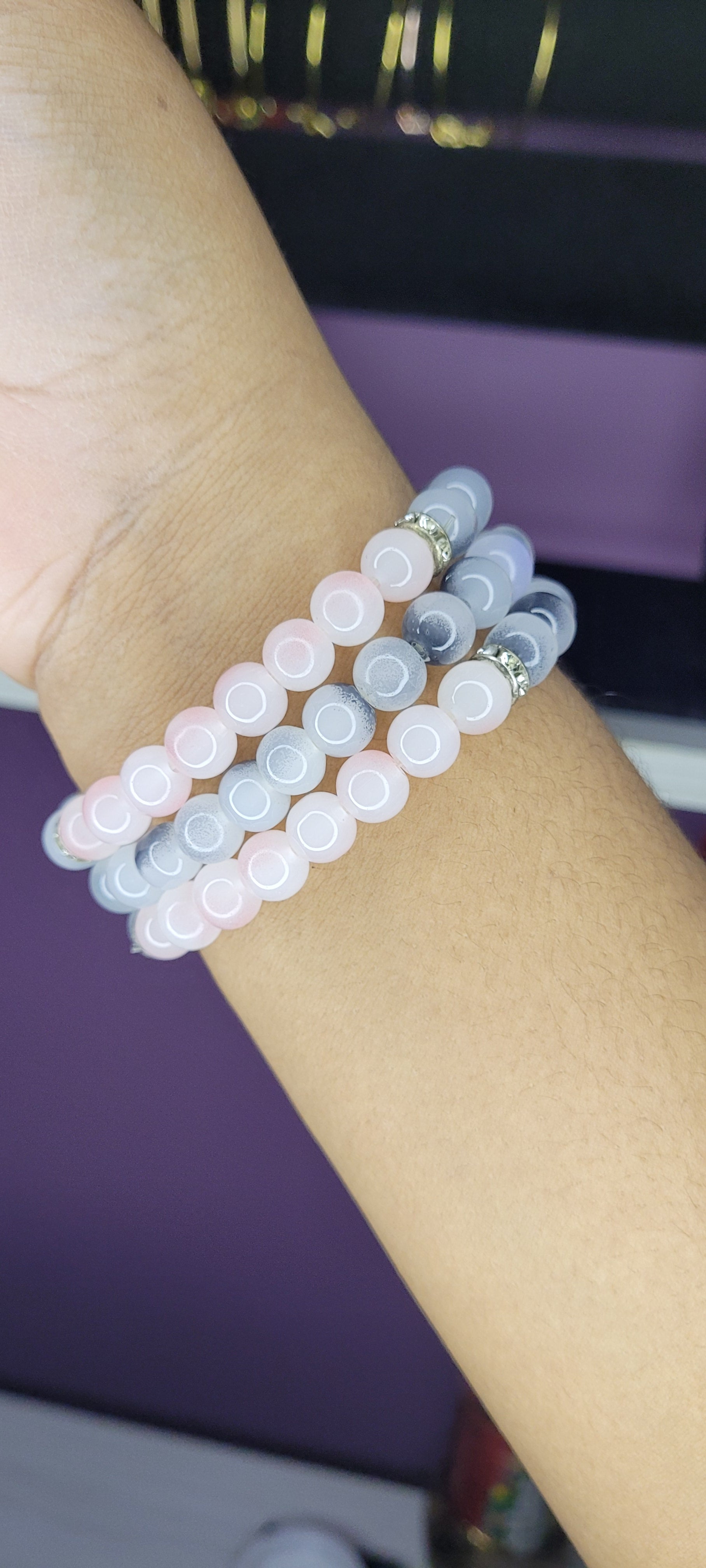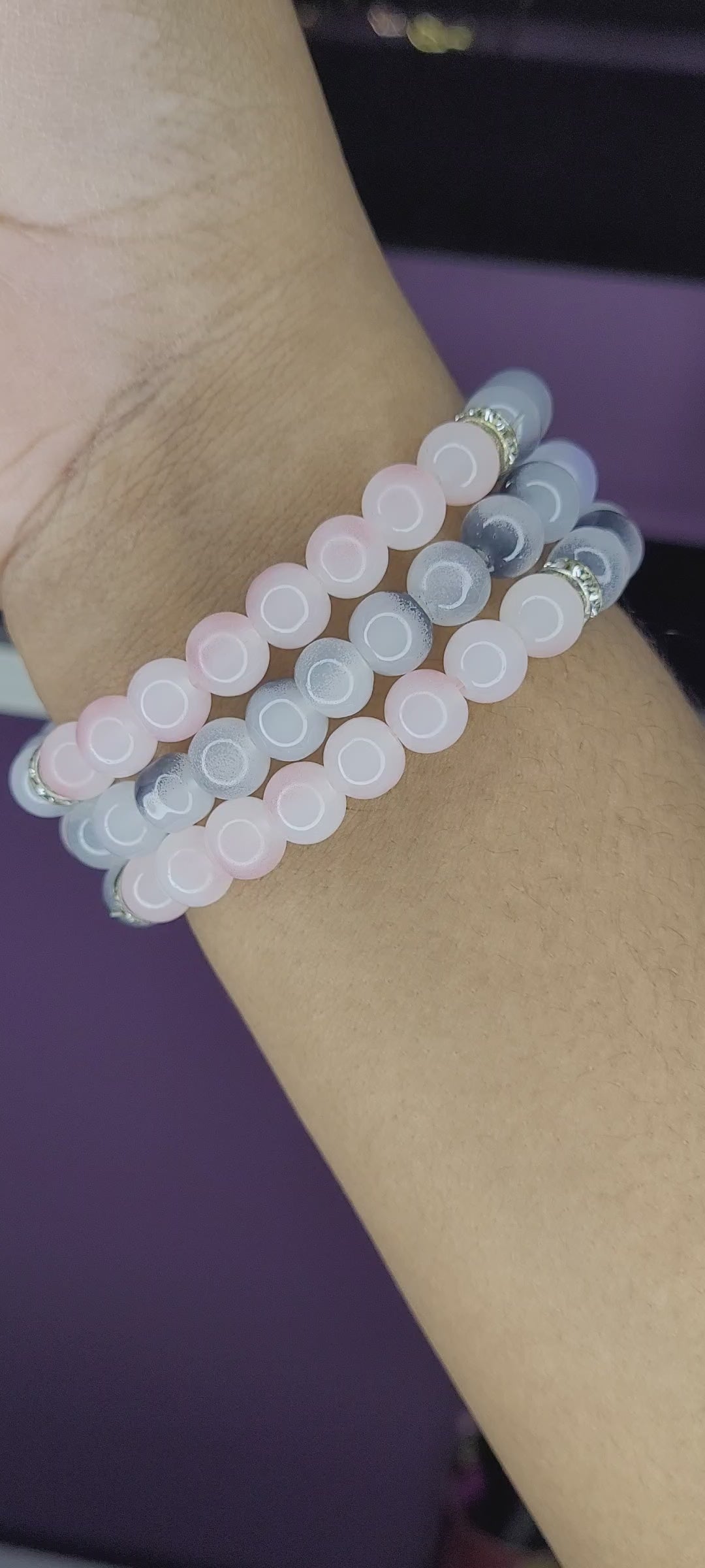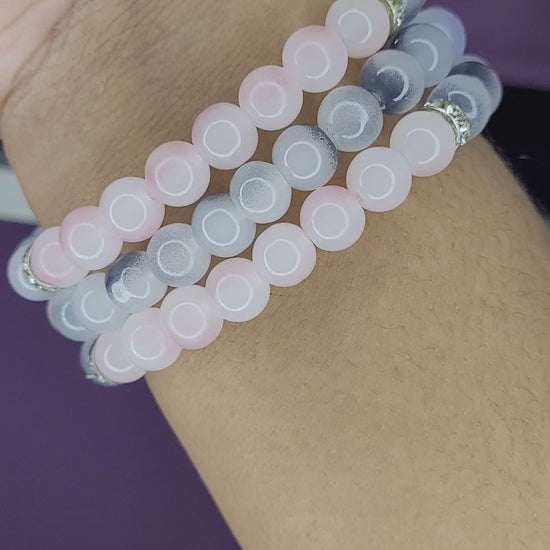 The Rebel bracelet is a unique and stylish accessory, featuring a half pink, half black design that represents both sweetness and a dark side. Adorned with silver spacers, it's the perfect addition to any outfit. Show off your rebellious spirit with this one-of-a-kind bracelet!